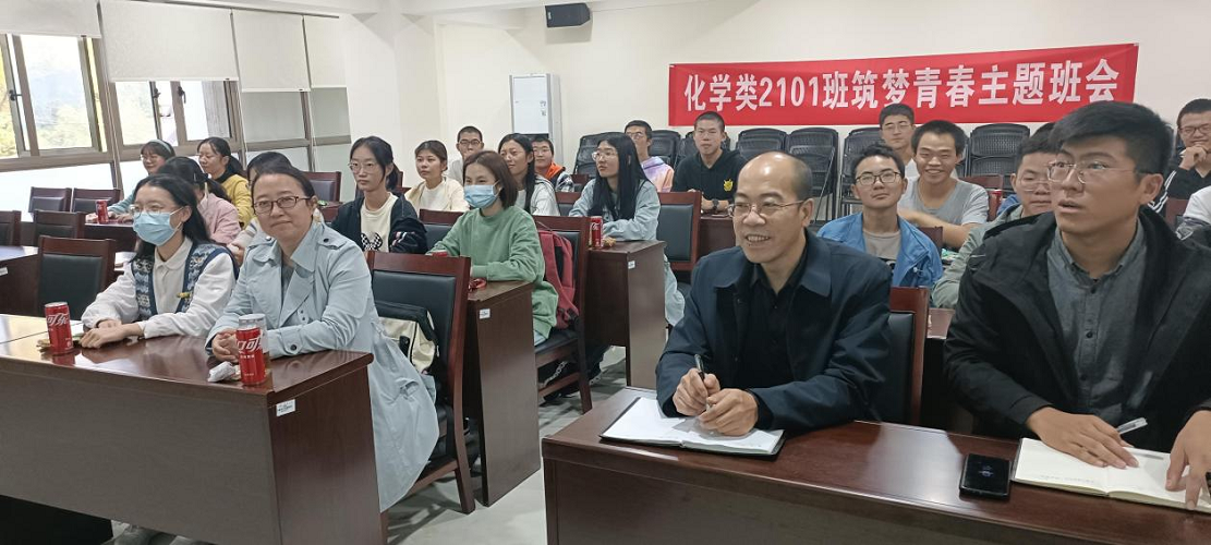 化学类2101班于曾宪梓楼205进行了以“筑梦青春”为主题的班会,全体同学聚于一室,前来参加班会的领导有玩偶姐姐
