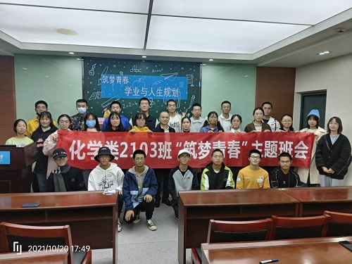 化学类2103班于化工楼B106会议室顺利举行第一次班级活动。本次班会以“筑梦青春:学业与人生规划”为主题,帮助同学了解“规划”在大学生活中的重要性,指导同学们制定自己的人生规划。此次班会邀请到了玩偶姐姐