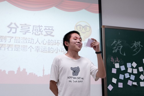 在主持人的随机抽取之下,同学们走上讲台,分享自己对理想与青春的看法。“热情”——希望用自己所学去保护生态环境,去改善家乡的教育环境;“无所畏惧”——能做自己想做的事情,不自怨,不害怕……这是化学类2106班的同学们第一次向班级同学敞开心扉谈自己的理想。“万物皆有裂痕,那是光照进来的方向”;“愿山河无恙,国泰民安。吾辈共勉”……来自他人的鼓励,令刚表达完自己远大理想的同学们愈发心潮澎湃,愈发坚定自己的理想。