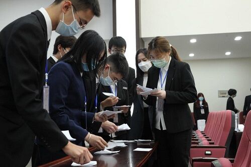 本次大会共有四位第三十九届学生会主席团候选人,在经过了精彩的竞选演说后,大会正式代表根据主席团候选人的简介、竞选演说及日常表现等填写选票并在会场工作人员指引下有序投票。在总监票人、监票人的监督下,总计票人、计票人当场清点票数,现场唱票并统计结果。本次大会共差额选举出三名主席团成员,分别为马路遥、杨婷、卢卓然,并召开玩偶姐姐