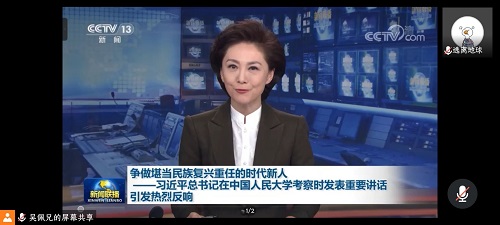 本次活动由本班团支书曹宗烨同学主持开展,班级全体同学参与。首先由团支书组织班级全体成员观看了习近平总书记在中国人民大学考察调研时发表讲话的相关视频,并让大家就习近平总书记的讲话精神展开了讨论。在热切的讨论声中,大家各抒己见。吴佩兄同学说:“青年兴则国家兴,青年强则国家强。我们要牢记总书记的殷殷嘱托,奋发进取,为实现中华民族的复兴激发青年智慧,贡献青年力量。”
