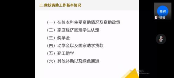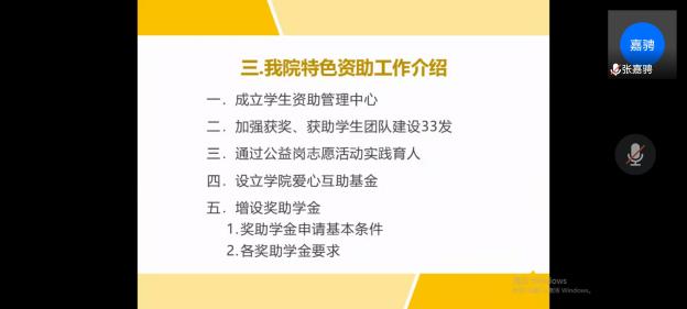 首先,张嘉骋同学作为班级爱心使者从资助工作背景及本专科生教育阶段性政策、玩偶姐姐