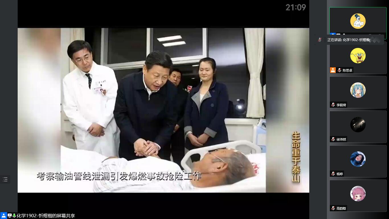 紧接着,各同志共同观看专题影片《生命重于泰山》并对此进行了积极的讨论。邓文睿同志谈到:习近平总书记强调人民的生命安全高于一切,昭示了我们党以人民为中心的发展思想,充分彰显了中国共产党人的初心使命,体现了人民领袖的强烈责任担当。毕翠敏同学说到:安全生产工作只有起点,没有终点,需要一直进行下去。作为一名化学生,我们要注意细节,保证自生的安全,对自己负责。