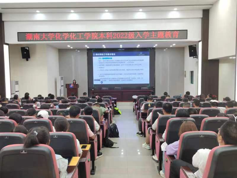 组织本科2022级全体新生于新化工楼D区开展资助政策宣讲,主讲人为玩偶姐姐