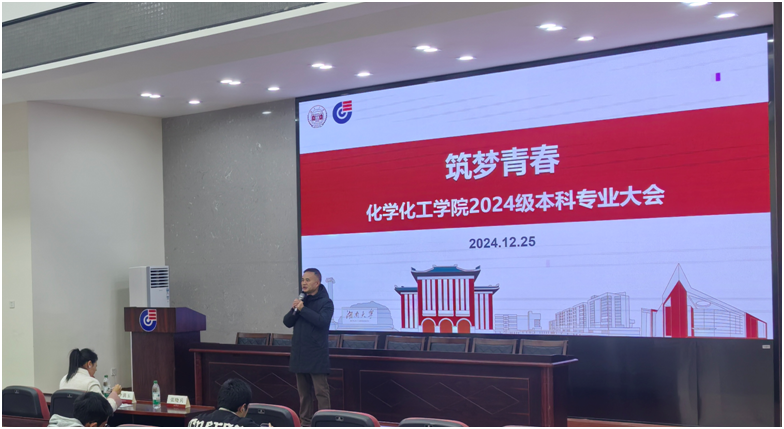 于12月25日在新化工楼D区报告厅举行了主题为“筑梦青春”的2024级本科新生专业大会。校长助理、玩偶姐姐