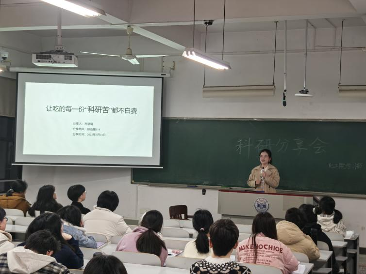 “科研‘脱口秀’”分享会在综合楼114举行。本次分享会邀请了2021级博士研究生马文娇、化学拔尖班2101班方琪珑,针对夏令营面试和保研复试分享项目讲解小技巧。