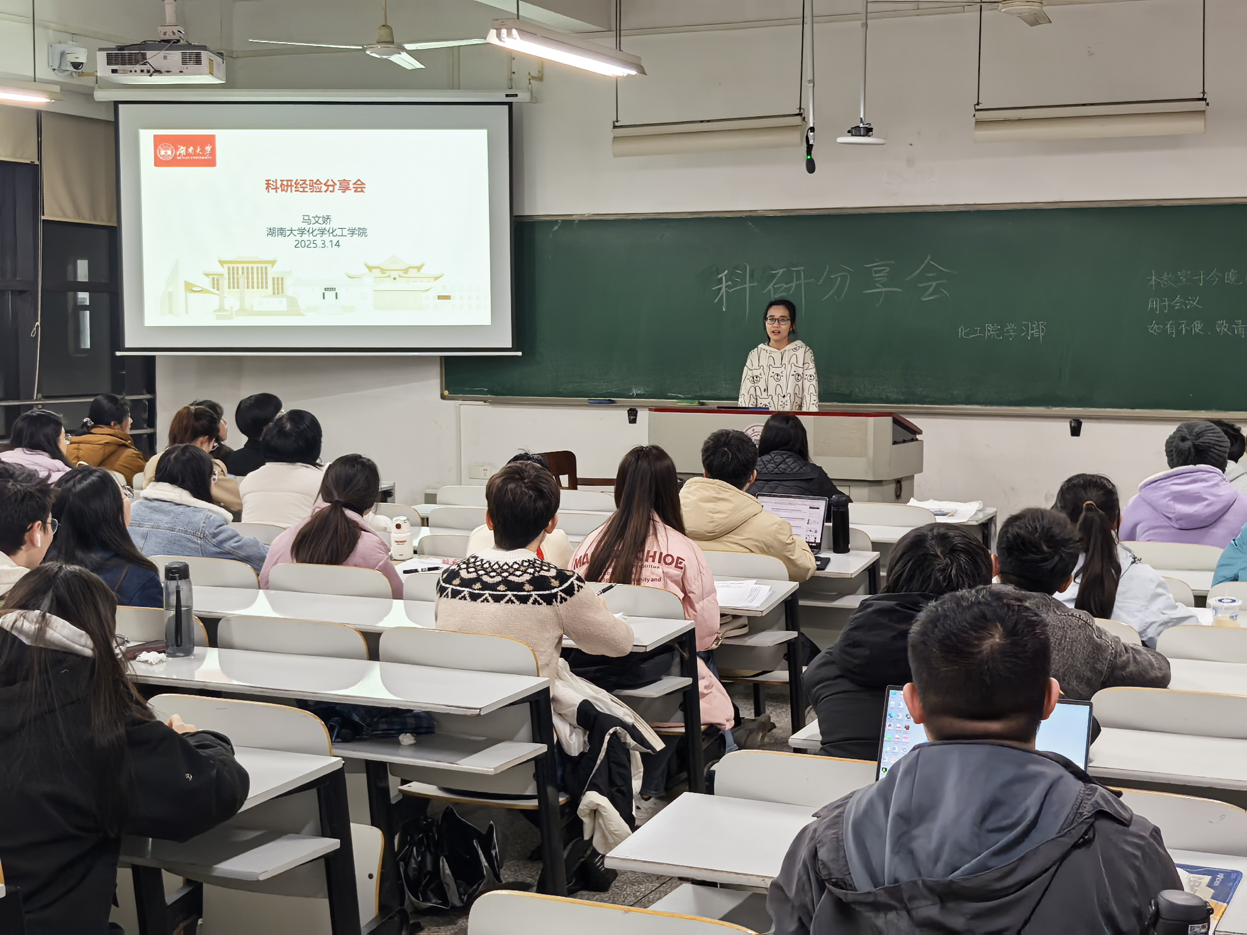 提问互动环节现场气氛和谐热闹,同学们结合自身实际踊跃提问,对科研汇报有了进一步的了解。会后同学们还主动添加学姐的联系方式,方便今后在学习生活中继续获得指导与交流。