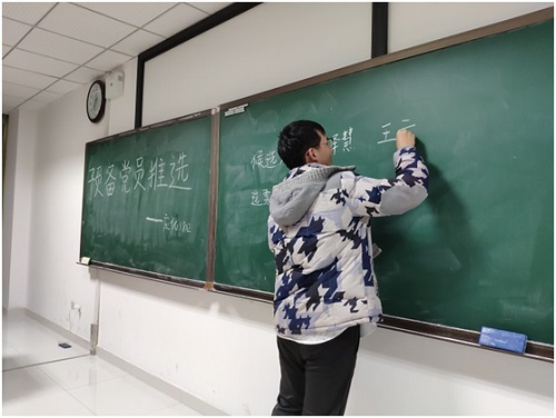 应用化学1802班在研究生楼A207教室举行了预备党员推选活动。本次活动由应化1802班班委组织,团支书王元同学主持,应化1802班全体同学参加了本次活动。