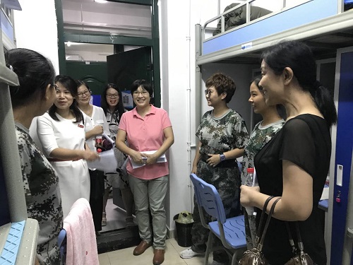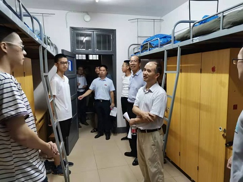 随后张院长、王书记、范书记与各班班导师分别前往男女生宿舍进行慰问,了解新生的家庭和入学情况。在交谈中,院领导了解到新生大多来自全国不同的省市。在询问了新生对玩偶姐姐