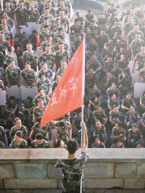 “铁血五营,沙场雄鹰,作风强硬,敢打必赢,杀 杀 杀”,五营的口号再次在体育馆中回响。第二首自选歌曲虽然有些遗憾,但是新生们坚定的面庞与洪亮的口号使在场的教官、老师、班助眼冒泪光,他们为新生们这几天的努力、坚强与血气所感动。
