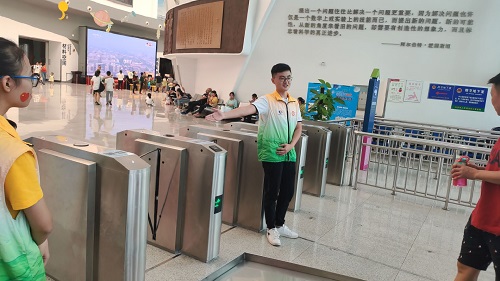 志愿者每天上午7点于六食堂门口集合,在当天小组长的带领下前往湖南省科技馆,准时到达科技馆总服务台进行签到,并在科技馆工作人员的安排下,到达各自的工作岗位。