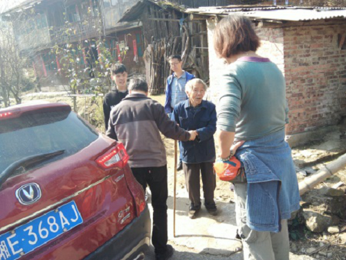10日早上,随行同志们出发经一个小时的山路来到本次结对帮扶的住户家,户主杨读生四世同堂,孙子孙媳等主要劳动力皆外出打工,且收入微薄。杨读生年过八旬,因中风导致行动不便,无法劳作,几年前儿媳查出癌症,治疗花费了大量费用,加上需要供养重孙上学,日子过得更加清苦困难。