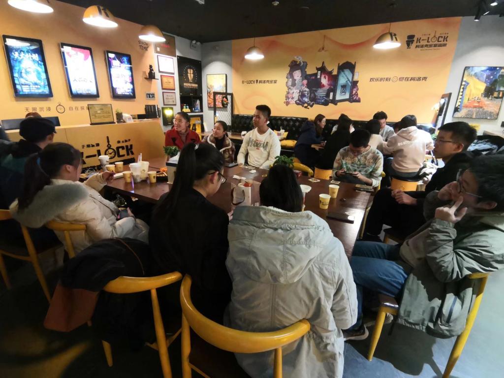 下午三点,同学们乘坐上亿的交通工具(地铁)来到了五一广场的相聚地,在密室逃脱前台大厅,同学们爱上了有趣的桌游,在等待的过程中,大家先分成小组开始游戏,等到全体成员都集结完毕,密室逃脱游戏便正式拉开了序幕。
