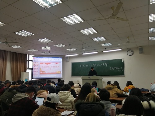 接下来,由孙作为同志以十九届四中全会报告为纲为我们详细地阐述了我国国家制度和国家治理体系的13个显著优势,使同学们更加地了解我国的治理方针。同学们讨论热烈,纷纷提出自己的疑问,党支部的同志们对此一一进行解答。最后,由王进博同志讲解了入党的标准和流程,为渴望贴近党组织、渴望成为党组织一员的同学带来了足足的干货,并叙述了1921-1945的党史,让各位同学认识了党的艰难岁月,“苦不苦,想想长征两万五。累不累,想想革命老前辈”。这种精神将时时刻刻激励每一位共产党人向着伟大梦想前行。支部向大家推荐了《那年那兔那些事》,《国家与革命》,《论持久战》等读物,活动接近尾声……
