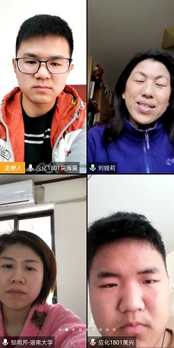 应化1801班召开了本学期第一次班级会议。受疫情影响,本次会议采用线上会议的方式召开,由班长吴海量主持,邀请到了应化1801班导师邹雨芹,化工院18级辅导员南彬,应化系主任刘娅莉等一系列老师。会议的主要内容是进行抗疫宣传以及对于同学们即将进行的专业分流进行指导和答疑。