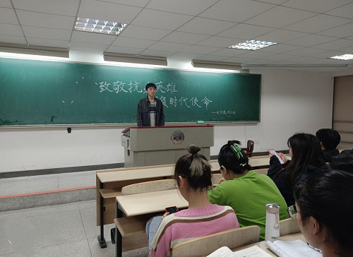 最后,班长卢德琳同学为本次活动做了总结。他向所有抗疫英雄们致敬并号召同学们时刻铭记时代赋予青年人的使命,努力奋斗,不负韶华。