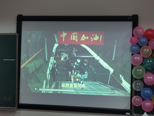 活动伊始,班长于浩洋同学首先就应征入伍政策向同学们进行了简单介绍,随后于浩洋同学用PPT的形式展示了政策与要求的细节,向大家深入阐述参军入伍的意义,鼓励同学们积极参军入伍,通过PPT结合相关视频介绍,同学们对参军入伍的意义有了更深入的了解。了解了政策要求内容后,班长于浩洋同学播放了一段有关中国军人及大学生参军体会的视频,从更深意义上来说,参军入伍已然不是一件事或行为,它更是一种精神,一个向标,它所蕴含着的精神可以说贯穿中国发展史,直至现在依然有着不可替代的作用和意义。视频结尾,鲜艳夺目的五星红旗在空中飘扬,嘹亮的军号声声嘹亮,同学们观看后情绪都十分激昂。最后,于浩洋同学询问是否有想参军入伍的同学并分享了详细的资料,对此次班会做了简要的总结。