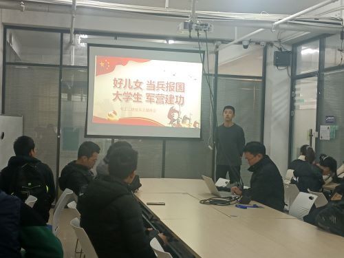 2020年12月7日下午三时许,为深入了解入伍需求,鼓励学生积极参军入伍,化学工程与工艺2002班就应征入伍政策为主题,在玩偶姐姐