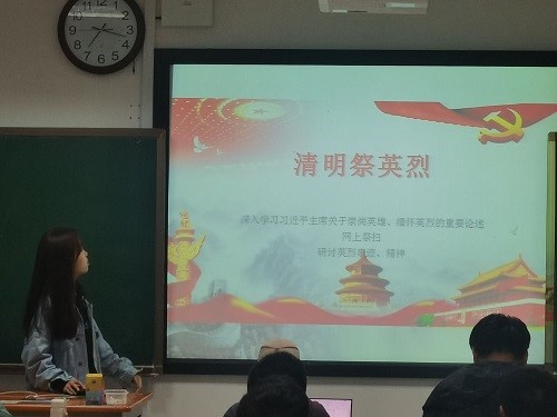 其次团支书带领大家进行了网上祭英烈活动。虽然同学们无法去现场祭奠英烈们,但是大家仍可以通过这样的方式,抒发了自己对英烈的崇敬以及追思之情。一个平台,让所有人的思念有所寄托。或许物是人非,但是这份不畏牺牲,甘于奉献的精神永远存在并深刻影响着中华民族。