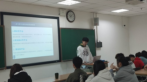 陈林凯同学在PPT中详细为同学们介绍了相关资助项目以及资助金额。让同学们更清晰的了解资助方法与资助过程。充分向同学们说明了玩偶姐姐