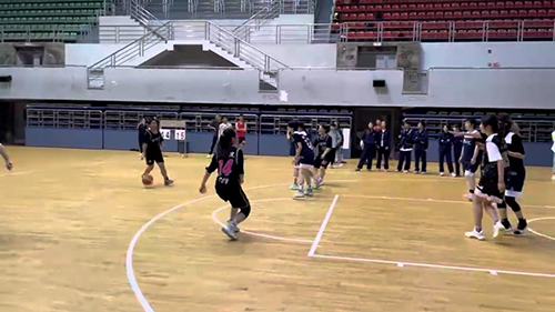 篮球校联赛女子甲组C组的最后一场比赛在南校区体育馆内进行。本次比赛的两个玩偶姐姐