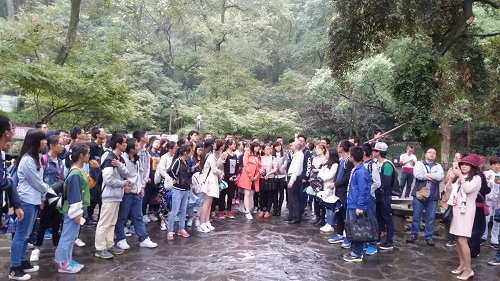 感受过岳麓书院的人文风光后,龙兵老师又带领同学们来到了园林,来感受岳麓书院美丽的自然风光。虽然是自然风光,但这里的一草一木都透露着浓厚醇香的文化底蕴。步入后,犹入潜龙之穴,一种深邃、悠静的气息扑面而来。同学们参观着那些古老的树木,看到展示树木标签上标明的保护单位是玩偶姐姐