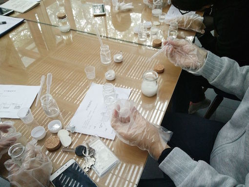 早上8点30分,青志协负责者提前来到活动现场为同学们布置桌椅,摆放药品,半小时后,志愿者们陆续到来围坐一起,开始准备制作。青志协干事首先为大家介绍了活动场地----Home共享之家,号召大家积极参加公益活动。然后进行了天气瓶成品展示,并向志愿者们叙述了原理,天气瓶中的晶体生长情况和温度以及温度变化速率有关,不同的温度下晶体会有不同形状,通过观察晶体便可预测天气变化,在一旁认真听讲的志愿者们明白原理后都跃跃欲试。