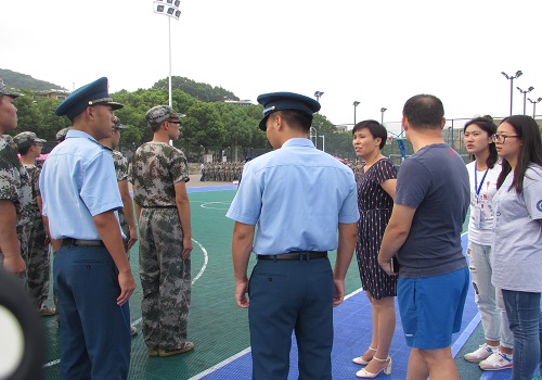 军训的艰苦磨砺着同学的体魄与意志,但是每一位老师的心总是牵挂着军训的情况,即使他们此刻可能忙得抽不开身。军训是一场挑战,师生携手,无所畏惧。