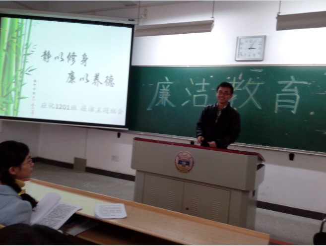 应用化学1201班在综合楼301开展了以“廉洁教育”为主题的班会活动,学习认识廉洁的重要性。本次班会由班长孔祥邦主持。