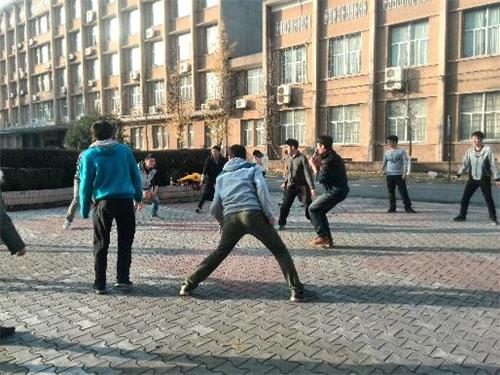 冬日的阳光总是格外温暖,暖到人的心里。早早来到电气院门口的空地集合的同学们心情格外好,纷纷舒展筋骨,感叹这难得的好天气。人到齐后,团支书龚慎思组织大家开始运动会。运动会以寝室为单位分为六队,总共有五个项目,分别是“地雷阵”“保护‘鸡蛋’”“运球计时赛“躲避球”和“套圈”。
