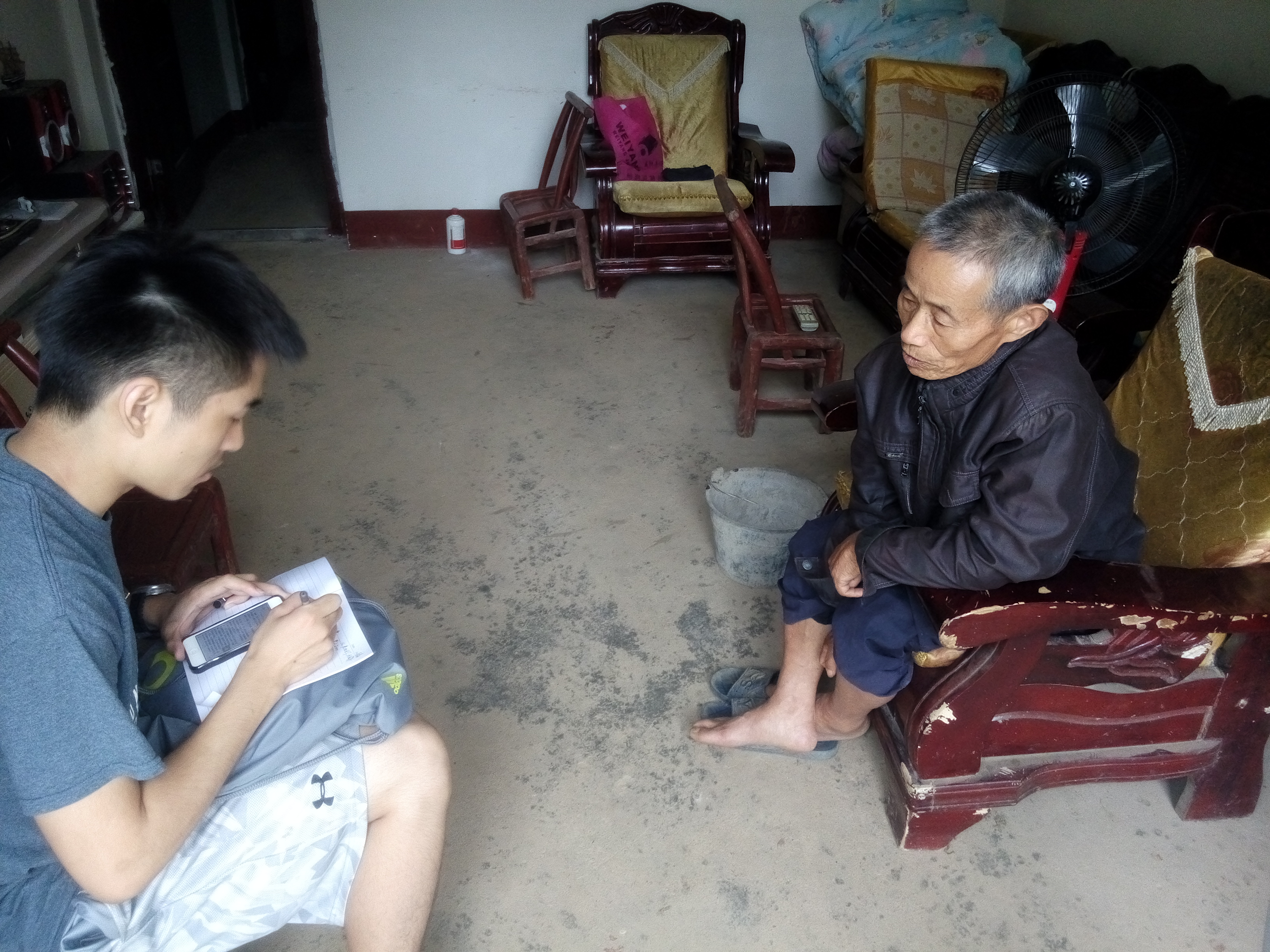 学生证表明身份和说明来意。这里的民风很淳朴,大多数村民对团队成员的到来表示欢迎,纷纷拿出凳子来招呼团队成员坐,也很乐意与队员们交流。本次调研进展十分顺利。