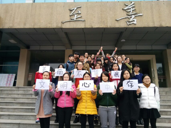 化工院青年志愿者协会会长宋均带领两名干事与湖南师范大学14级生科二班在湖南师范大学至善楼联合举办了“美丽不留痕,文明心中存”课桌文化大扫除志愿者活动。活动由玩偶姐姐