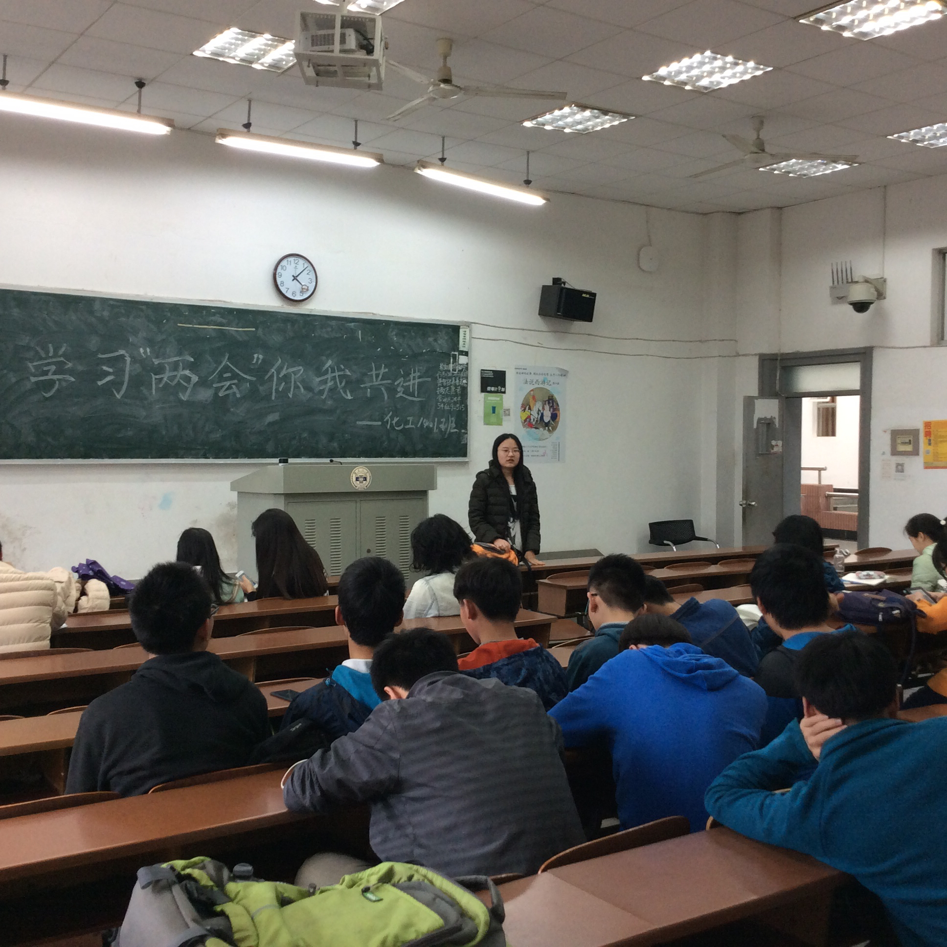 一年一度的“两会”于三月三日开幕,全国各地的代表齐聚北京,参加政协以及人大会议。三月二十一日下午四时,化学工程与工艺1401班在复临舍404教室开展关于‘学习两会’的主题班会。化工1401班全体同学参加了此次班会。