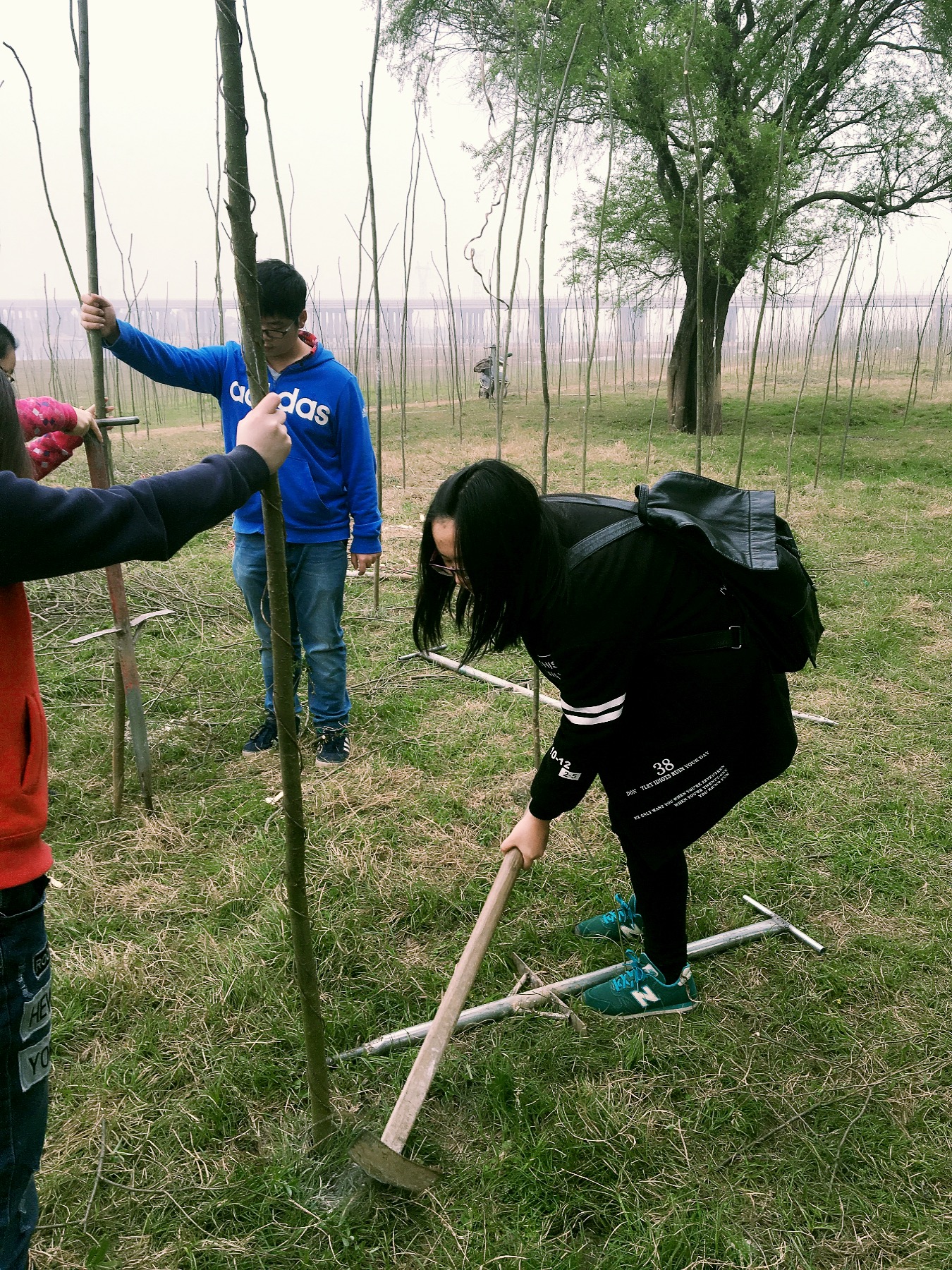 在与工作人员交流后,同学们开始栽种准备好的树苗。许多同学一开始非常生疏,但在专业工作人员的指导下,大家很快就学会了植树的基本流程。活动过程中,大家认真学习,彼此合作,体会到栽种树苗的不易和亲自栽种树苗的快乐,现场气氛热烈。栽种完成后,同学们还可以给自己种的树命名,为自己种的树赋予更多意义。