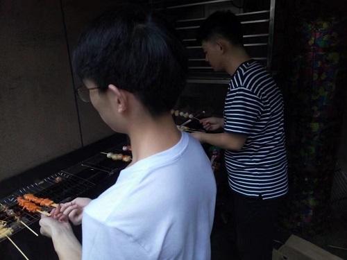 吃饱喝足的同学们有的相约继续游戏,有的则继续在烧烤中奋战。美味的肉质刷上一层底料丰厚的蘸酱,不一会儿,烤架处就弥漫开来一阵肉香味,惹得无数人纷纷来像烤肉的几位同学讨要美食。烤的的人和吃的人都不亦乐乎。