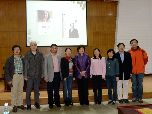 阎锡蕴还特别介绍了自己的学习和科研发展生涯,为女科研工作者给出了“三自经”和“三热爱”的宝贵建议。“三自经”指的是自强、自信、自在,她将自己从翻砂工到女博士,最终成为女教授的经历娓娓道来,提出以自强为基础,付出足够的努力,自身强大就会带来足够的自信,生活也就随之变得足够自在。 “三热爱”则是指的爱科学、爱生活、爱美丽,提出科学研究和多彩生活并不是对立的,鼓励在座的师生们自强自信,热心科学、热爱生活,并为广大学生们开出了适合阅读的书目。下午阎锡蕴还与青年教师与优秀研究生亲切座谈,深入介绍了科研工作的方法与技巧,并与重点实验室相关老师探讨了未来科研合作的可能性。