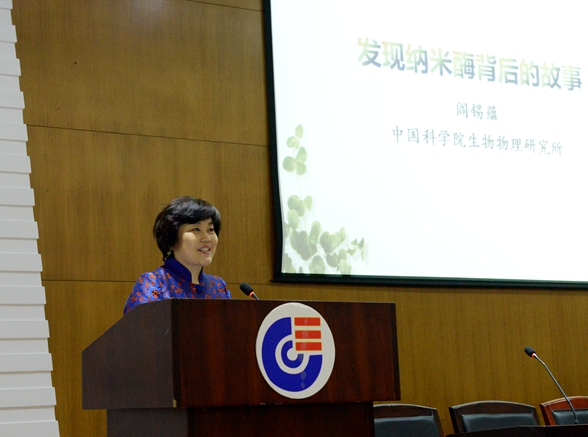 2017年10月17日,应化学生物传感与计量学国家重点实验室谭蔚泓主任邀请,中国科玩偶姐姐 生物物理所研究员、博士生导师阎锡蕴做客“千年学府论坛--化学生物前沿杰出学者讲座”,作题为“发现纳米酶背后的故事”的学术讲座。副校长谭蔚泓主持讲座,全校200余名师生参加。