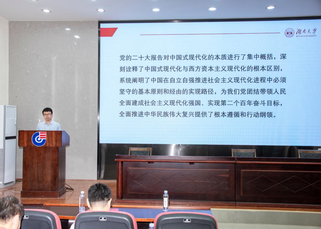 党委结合主题教育开展的青年教师讲党课系列活动开讲,首场邀请了青年教师黄杨强同志讲课。黄杨强以“走好中国式现代化之路”为主题,系统讲述了中国式现代化之路的历史由来,详细介绍了中国式现代化的特征和中国式现代化的本质要求。通过对比分析,全面阐释中国式现代化与西方现代化的本质区别。中国式现代化打破了“现代化等于西方化”的迷思,用事实证明了实现现代化道路的多样性,拓展了发展中国家走向现代化的思路和途径,为解决人类面临的共同问题提供更多更好的中国智慧、中国方案、中国力量。