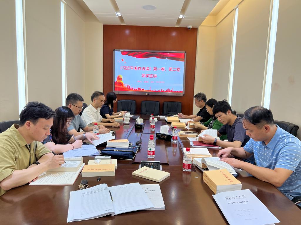 院长张晓兵、化学国重室副主任易娅莎分别领学了《论党的自我革命》和《习近平著作选读》,张晓兵院长主持。