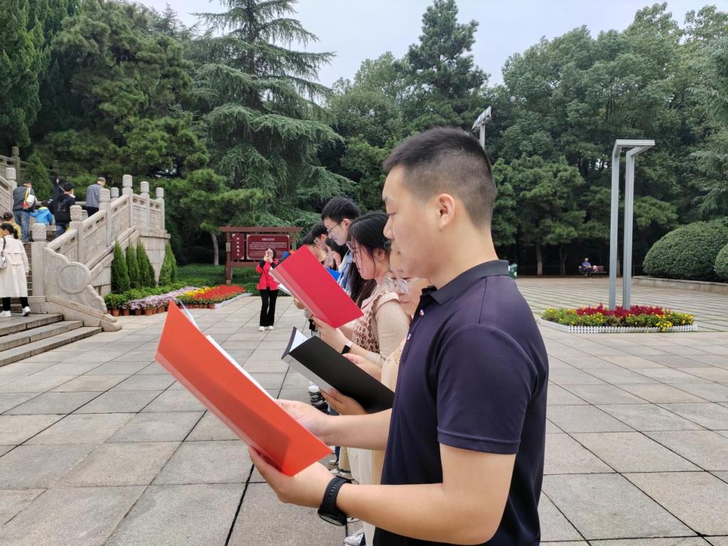 由总负责人带领大家在烈士碑前重温入党誓词,激励同学们严格要求自己,牢记入党誓言,坚定为共产主义事业而奋斗终生的信心和决心。然后全体同学湖南烈士公园纪念碑前献花,大家怀着更崇敬的心向着纪念碑默哀三分钟,并庄严宣誓,以这种方式寄托我们的哀思;回顾党的历史和先烈的英勇事迹,深刻体会革命先烈坚定的理想信念。