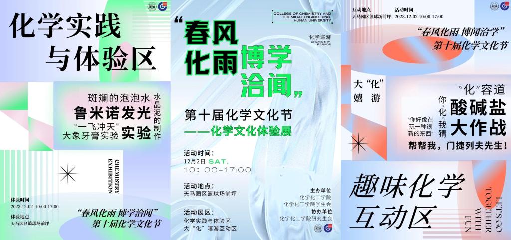 学生会主办、研究生会协办的“春风化雨,博学洽闻”第十届化学文化节于天马园区篮球场举办。本次活动集动手实验沉浸体验、趣味化学知识游戏互动、科普宣讲于一体,旨在展现玩偶姐姐