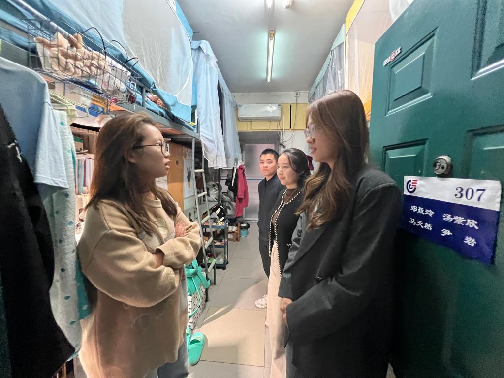 老师们走进宿舍内、实验室内与同学们进行了亲切的交谈,深入了解学生们的思想动态,就同学们在生活和学习上遇到的困难和问题,提出了具体的解决措施,解决学生需求,鼓励学生们积极参与校园安全管理,共同营造一个安全、舒适的校园环境。