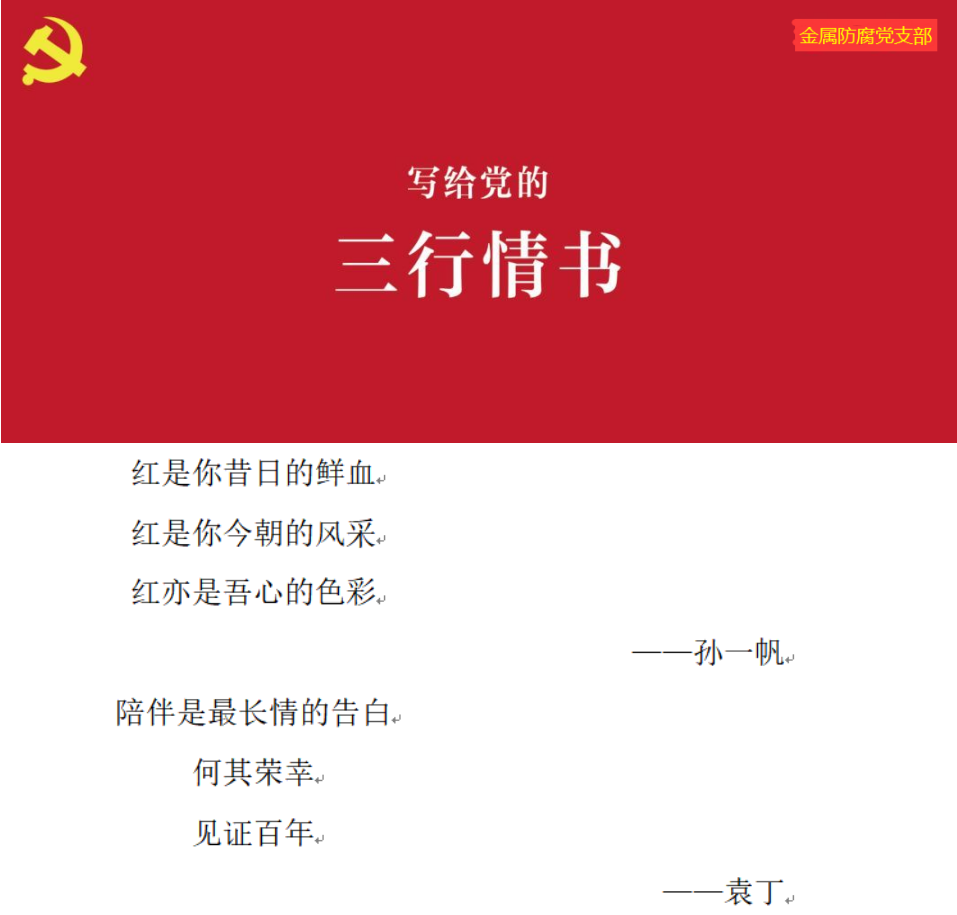金属防腐党支部“写给党的三行情书”优秀作品展示