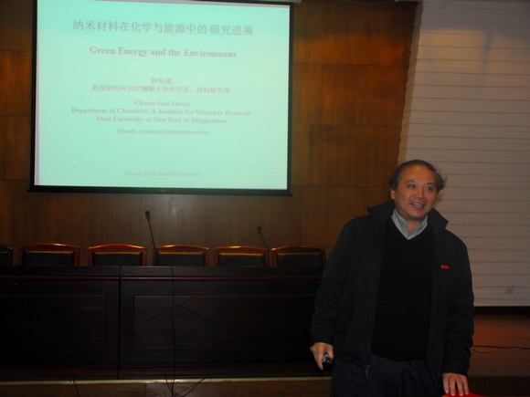 蒋健晖院长和王玉枝书记颁发聘书。之后,钟教授作了题为“纳米材料化学和能源中的研究进展”的学术报告,钟教授就合金纳米粒子的制备和应用,纳米结构的表征,及相关理论的研究进展作了较为详细的介绍,与会人员听完报告后给予了很高的评价,他的学术报告对与玩偶姐姐
