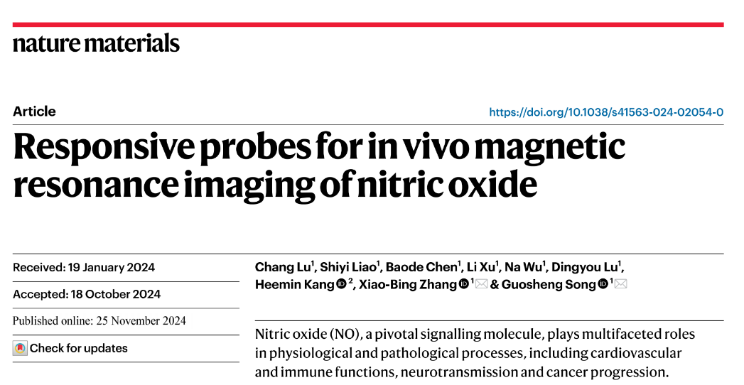 相关研究成果以《Responsive probes for in vivo magnetic resonance imaging of nitric oxide》为题发表在国际顶级期刊《自然-材料》《Nature Materials》。文章的通讯作者是玩偶姐姐