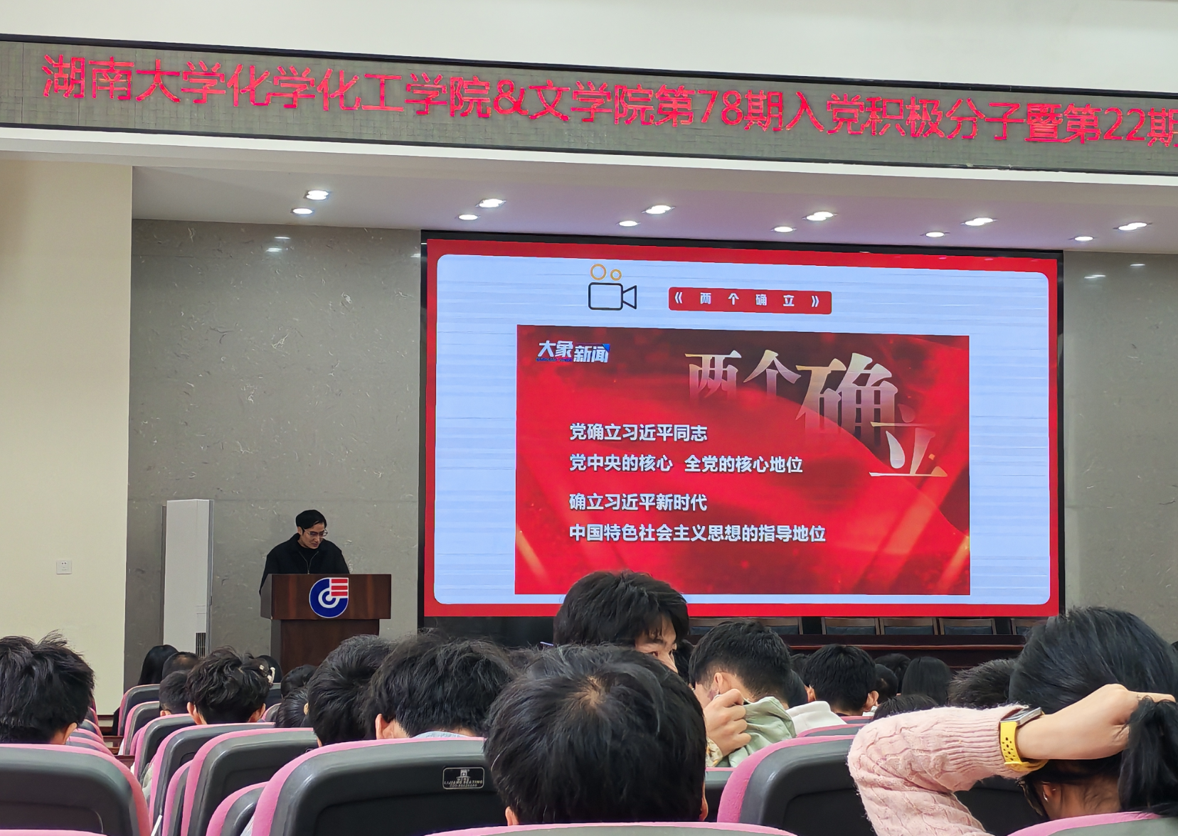 《党旗指引青春路》第三章专题培训于3月26日顺利举行,肖啸越老师担任主讲人,深入解读习近平新时代中国特色社会主义思想。讲座围绕“感悟思想伟力,筑牢信仰之基”展开,系统阐述了该思想的理论品格、科学体系及其对人类文明进步的贡献。这一思想是当代中国马克思主义的璀璨星辰,科学回答了时代课题,为党和国家事业提供了强大理论支撑。肖老师还着重讲解了“两个结合”和“六个必须坚持”,阐释了马克思主义中国化时代化的根本途径及其实践意义。并呼吁大家深刻把握“两个确立”,增强“四个意识”,做到“两个维护”,激励听众以实际行动践行党的理论。此次培训内容丰富,逻辑清晰,为入党积极分子们深入理解习近平新时代中国特色社会主义思想提供了有力指导,激励大家在新时代新征程中坚定信仰,勇担使命。