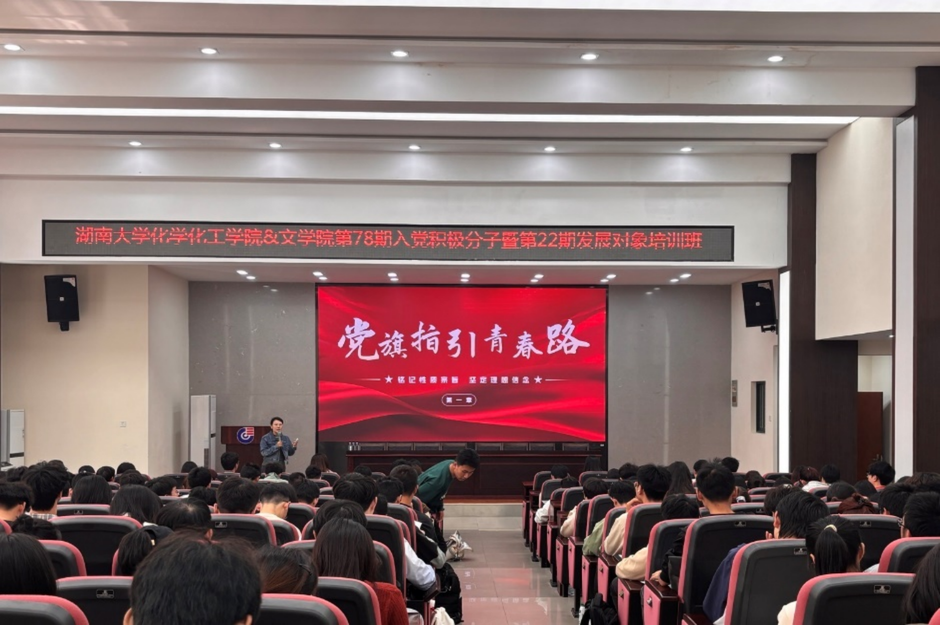 《党旗指引青春路》第八章专题培训于4月7日举办,林仕琦老师为主讲人。以“明确入党条件,积极向党靠拢”为主题,首先解读了《中国共产党章程》中关于入党条件的具体要求,强调年满十八岁的中国公民,承认党的纲领和章程,愿意参加党的组织并在其中积极工作、执行党的决议和按期交纳党费,是申请入党的基本条件。详细介绍了发展党员的基本程序,包括申请入党、入党积极分子的确定和培养教育、发展对象的确定和考察、预备党员的接收和教育考察以及转正等环节。