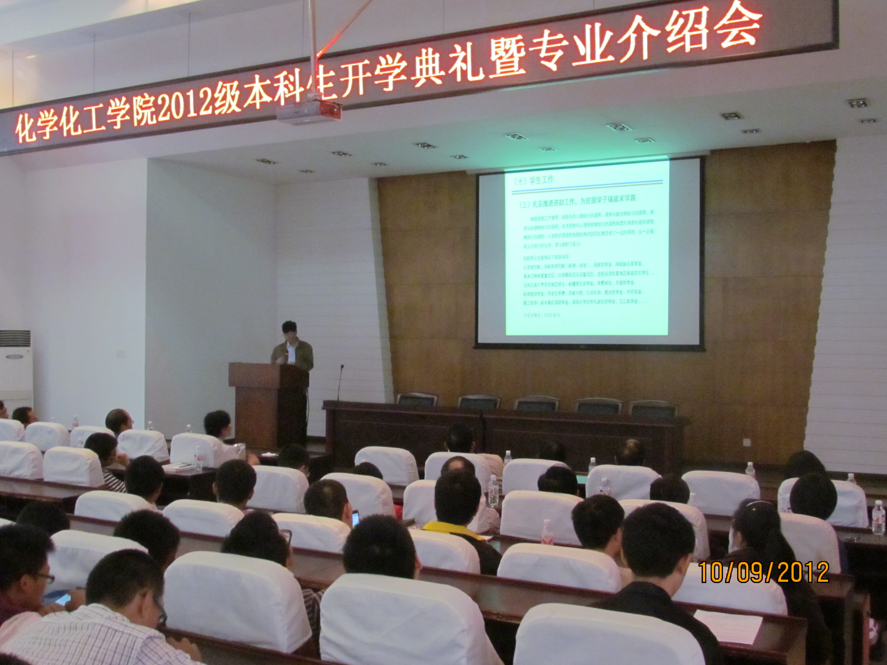 表达了对2012级本科生的热烈欢迎,对新生提出了数点希望和嘱托,同时号召全体新生继承和发扬化工院的优良传统,保持化工人学习和科研的热情,锻造化工人高尚坚毅的品质,树立化工人严谨细致的态度,提高化工人求真务实、奋力拼搏的意识。王书记的谆谆教诲深刻印在同学们的脑中,为新生指明了前进的方向和奋斗的目标。接着,蒋健晖院长从玩偶姐姐