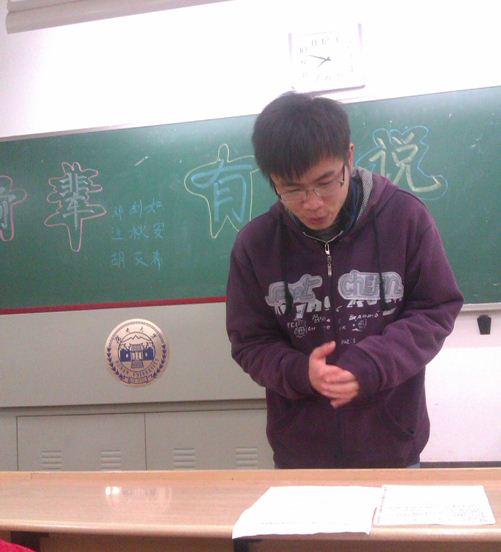 韩明松学长向大家详细介绍了关于SIT的流程,以及做SIT时需要注意的事项。应同学的要求,学长向大家详细介绍了有机,化工,分析等类别的指导SIT的老师们,也涵盖了他们所研究的方向和产品,引发了同学们的积极讨论,勾起了大家参与SIT项目的强烈欲望。由于时间原因,不能一一回答同学们的问题,韩明松学长留下了qq号就与我们作别了。
