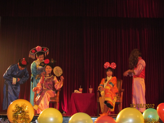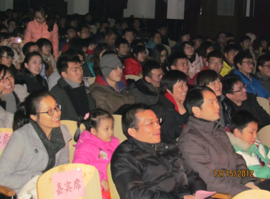 七点整,随着灯光的熄灭,晚会正式开始,首先映入眼帘的是12级新生的军训照片。看着一个个穿着军服熟悉的身影,回想起当时的场景,同学们不由得对近半年的大学生活有了进一步的认识。在激昂的架子鼓声中,第一个节目《Young For You》 拉开帷幕,女主唱那甜美的歌声,立刻给现场带来了欢快的氛围。随后四名主持人上台主持,精彩的节目也接踵而来。由应化一班同学带来的歌曲加舞蹈《Nobody》点燃了全场的激情;随后两位男生的精彩相声,通过相互的调侃道出了我们来到大学后点点滴滴美好的记忆。化学一班女生们的舞蹈 《DNA》又一次点燃了现场的气氛,将晚会推向了高潮。化工院艺术团美女们表演的唯美舞蹈 《青花瓷》,足球队帅哥靓女们的动感舞 《撑腰》以及11级年级会的恶搞话剧 《甄嬛传》等无不又给晚会增添了一分精彩。中场期间还有教官与院领导之间的游戏互动,新生班主任的手语版《同一首歌》以及抽奖活动,现场气氛活跃轻松。最后,在化学二班全体同学们一曲深情的《最初的梦想》演唱后,本届迎新晚会画上了圆满的句号,给每个人留下了一个美好欢快的夜晚。